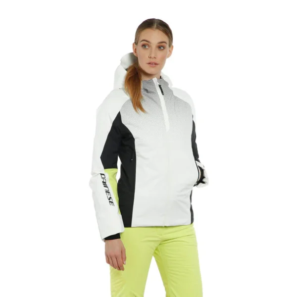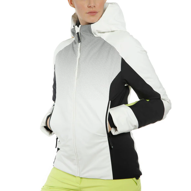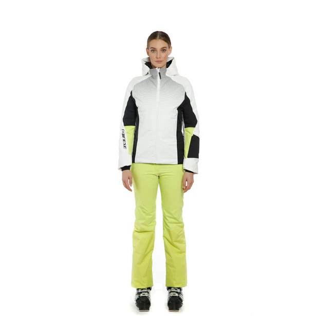 Comfort, warmth and lightness. Designed for the woman who wants maximum comfort on long ski days. The elastic fabric with waterproof Ergo-Move membrane ensures protection from the elements without limiting the high level of breathability and freedom of movement. Thanks to the side vents and large pockets, the jacket is practical and suitable for any use. The jacket’s profile is designed to perfectly accommodate a stand-alone Dainese back protector.