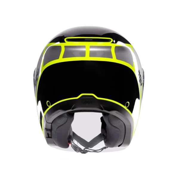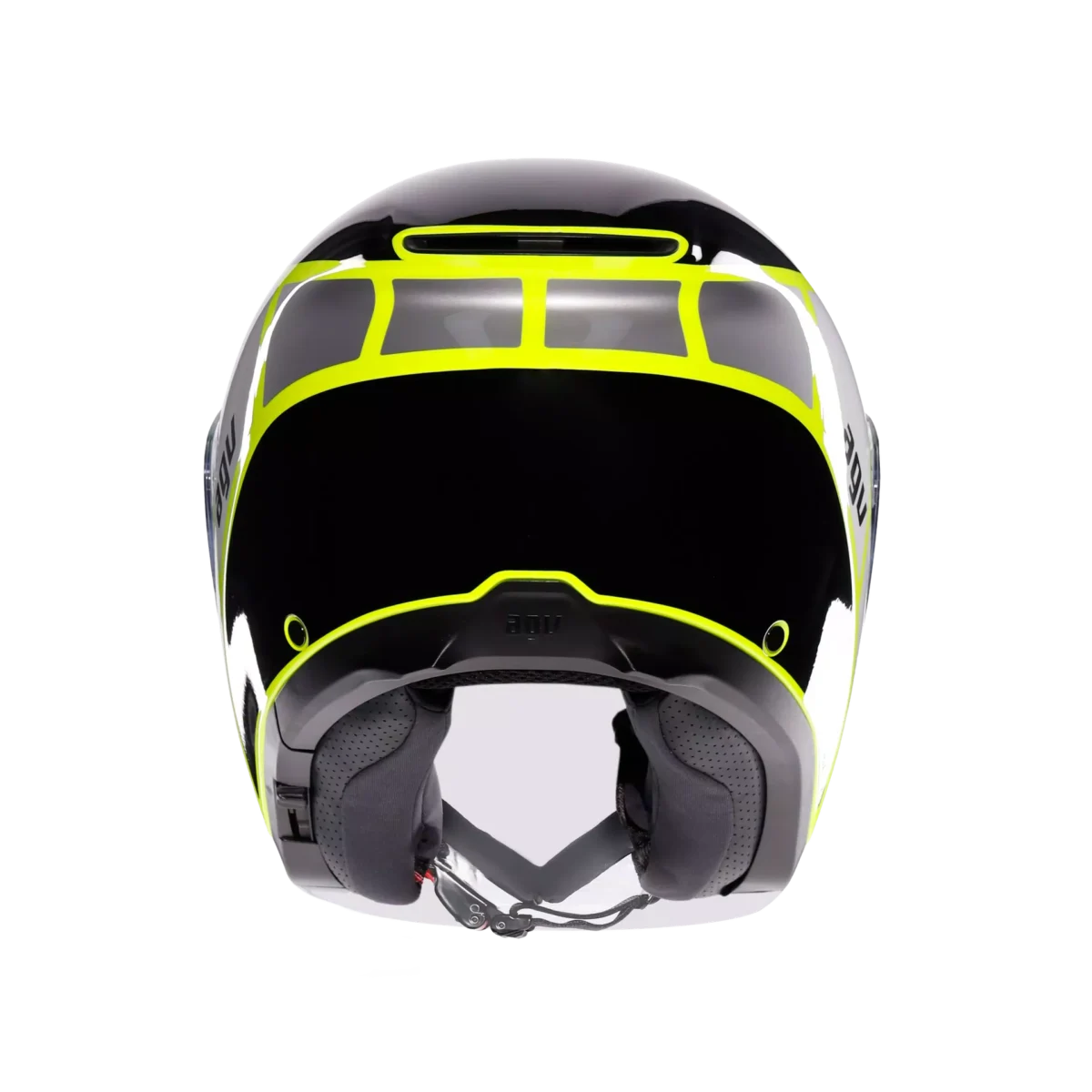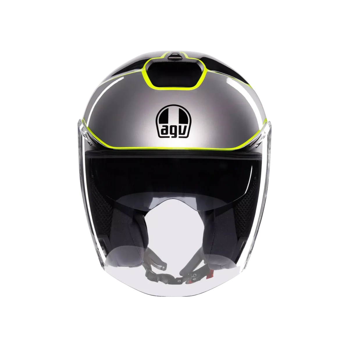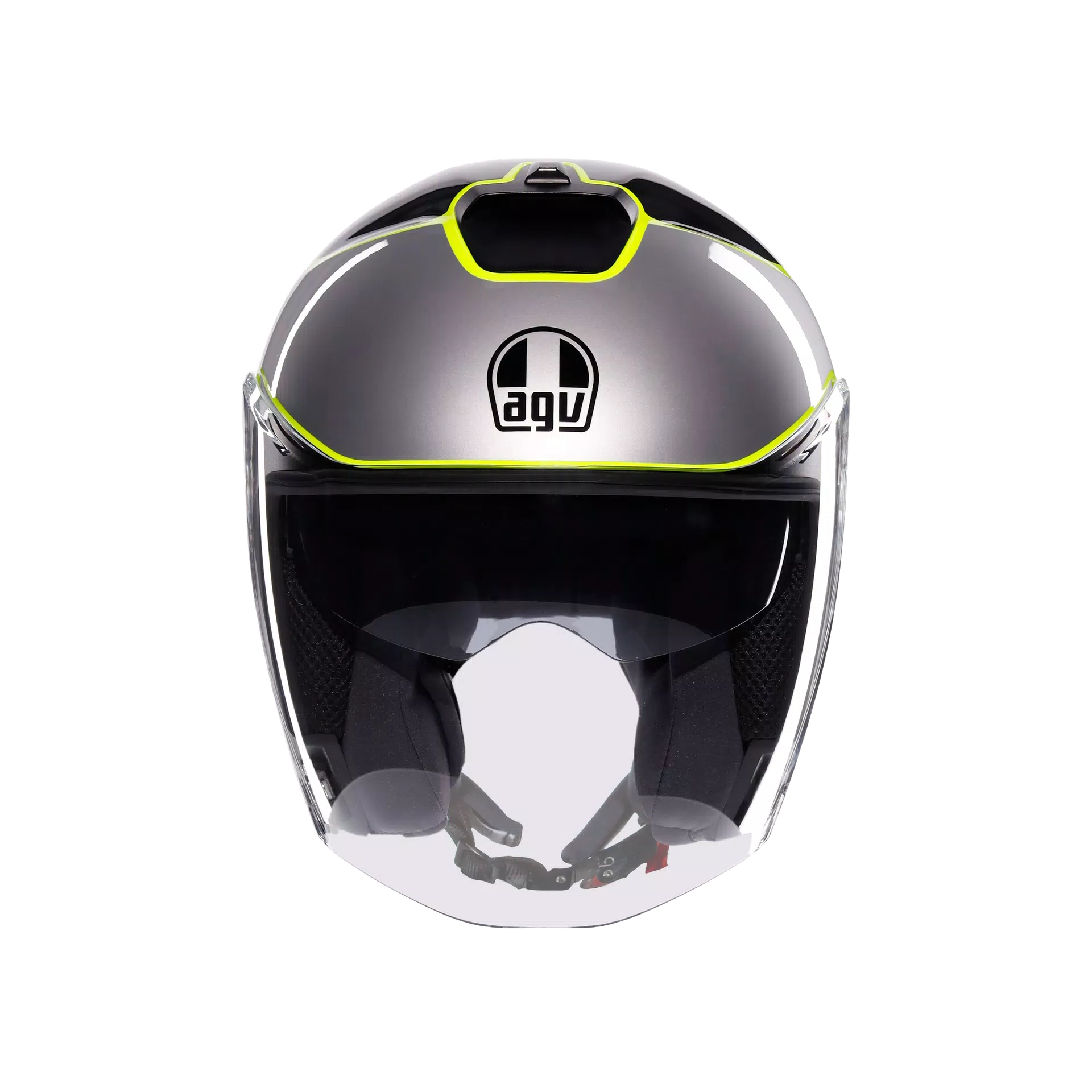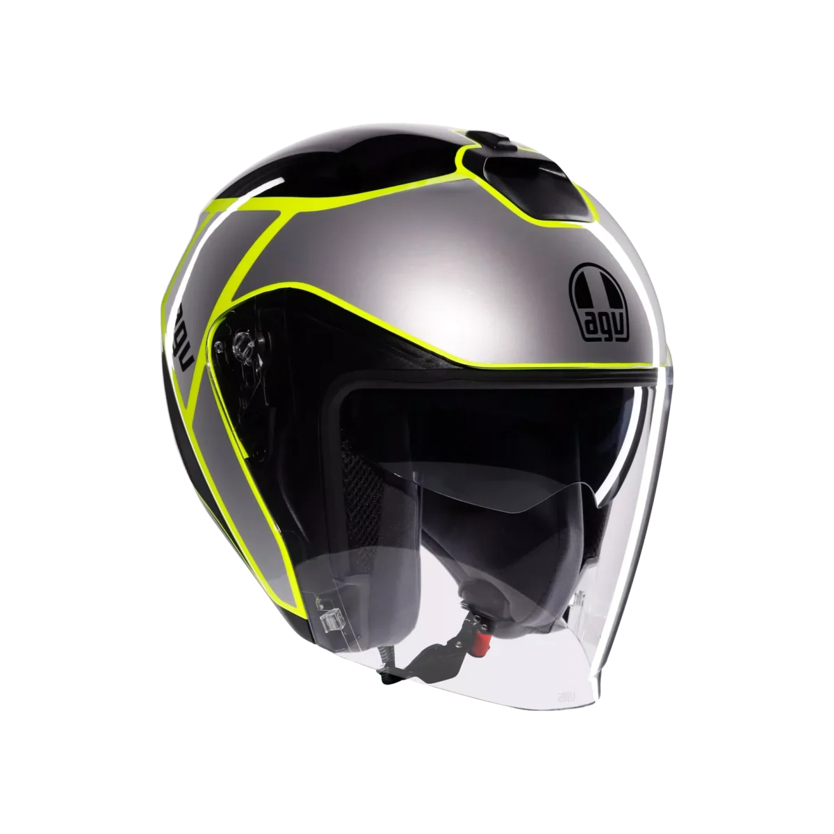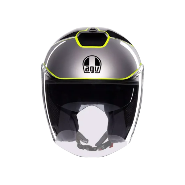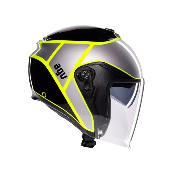 Irides is the new AGV open-face helmet in thermoplastic material, with ECE2206 homologation, designed to guarantee protection and comfort in everyday urban travel. Featuring a clean and modern design and extremely accurate side plate details, this helmet is distinguished by an elongated visor – synonymous with protection – with VMS (Visor Magnetic System) magnetic closuremechanism, for maximum stability and comfort even at high speeds. The visor, designed to house the Pinlock® 70 anti-fog lens (available as an accessory) and the adjustable sun visor ensure optimal visibility in any condition, both on sunny and cloudier days, when the sudden change in temperature between the surrounding environment and the inside of the helmet could cause annoying fogging. Thermal comfort inside the helmet is guaranteed by the adjustable upper air vent andrear extractor, which facilitate the exchange between the hot air inside the helmet and fresh air coming from the outside. Irides’s internal configuration ensures an optimal fit owing to its customization qualities: Cheek pads featuring different thicknesses are available, perfectly interchangeable between all helmet sizes, for a total of 24 possible configurations. All interiors, as well as the chin strap, are completely detachable and washable. Perfect for everyday urban outings, Irides is a highly functional helmet: During daily commute, features such as its micrometric closure, anti-theft ring – also useful for storing the helmet in maximum safety – and compatibility with the most modern communication systems are truly essential.
