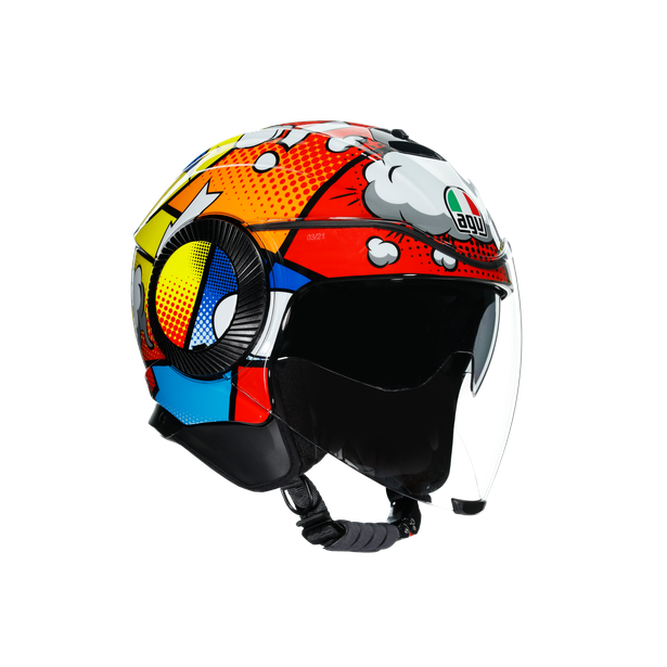 Orbyt is the ultimate AGV jet helmet, designed for maximum comfort, freedom and protection in the urban environment. Ultra comfortable interiors make every ride easy and enjoyable. The central air intake is strategically positioned in such a way that it isn’t affected by the sun visor position. Its smooth mechanism allows a perfect activation also wearing gloves. AGV safety standards are ensured by multi densities EPS construction, that guarantees superior impact performances. Riding is always fun.