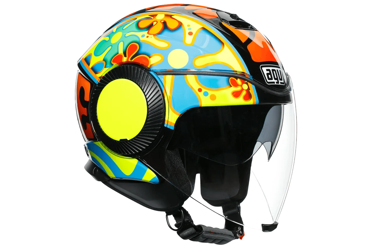 Orbyt is the ultimate AGV jet helmet, designed for maximum comfort, freedom and protection in the urban environment. Ultra comfortable interiors make every ride easy and enjoyable. The central air intake is strategically positioned in such a way that it isn’t affected by the sun visor position. Its smooth mechanism allows a perfect activation also wearing gloves. AGV safety standards are ensured by multi densities EPS construction, that guarantees superior impact performances. Riding is always fun.