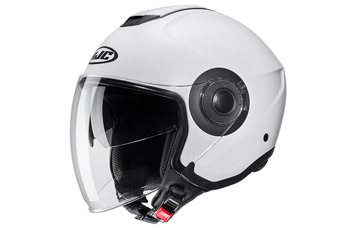 HJC’s brand new modern and stylish semi-jet motorcycle helmet with anti-fog shield and integrated sunshield.