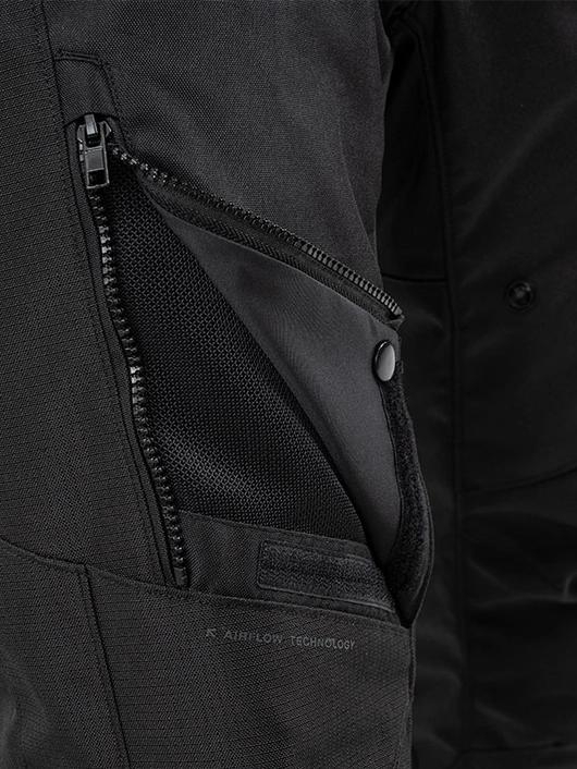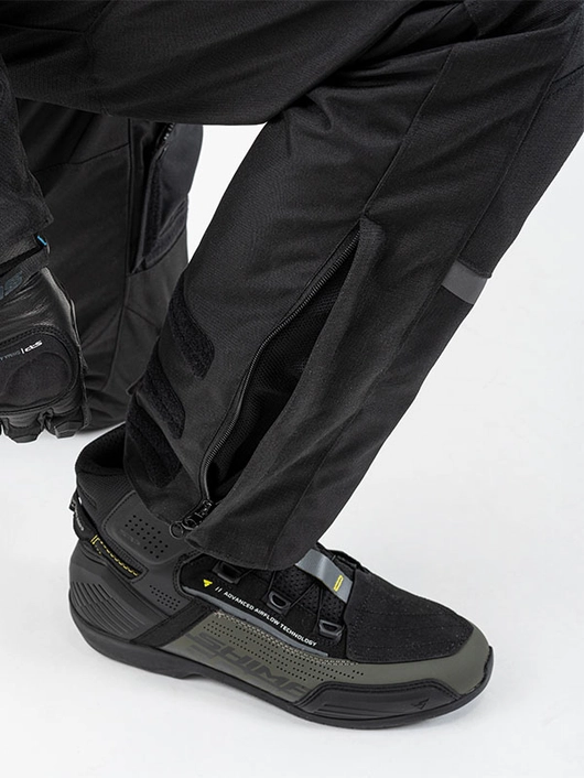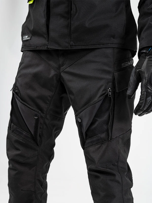The RUNNER textile motorcycle trousers are designed for longer motorcycle travel. The double-layer construction with a Teflon NextDry™ membrane provides all-round protection from changing weather conditions. With a waterproof rating of 10,000 mm water column and generous ventilation panels on the thighs and two-way ventilation zips at the bottom of the legs, the model is easily adaptable for rainy days and hot summer trails. Your safety is taken care of with certified SHIMA AirForce level 1 knee protectors, which can be retrofitted with level 2 (FLEXX) knee and level 1 hip protectors. The Ripstop 600D fabric reinforcements on the hips and knees and the adjustable design with slightly bent legs at the knees offer the optimum combination of protection and comfort. Travel comfort is ensured by the adjustable waist and leg widths and the synthetic polyurethane panels on the back, which provide excellent grip on the seat. Easy-fit zips at the bottom of the legs and a comfortable snap and hook fastening ensure comfort and functionality. The trousers are available in black, in a wide range of sizes from S to 4XL. This is for motorcyclists who are looking for reliable trousers, ready for any challenge!